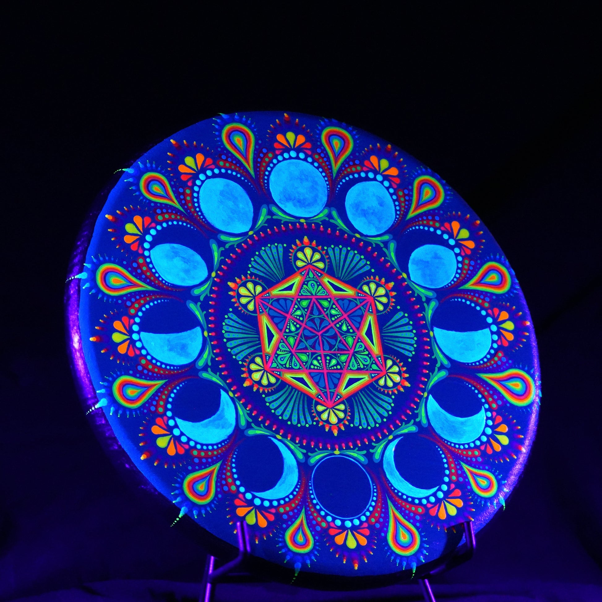 The Lunaris Matrix merges sacred geometry with celestial symbolism, featuring Metatron's Cube at its center encircled by luminescent moon phase cycles. This thoughtfully designed piece harnesses the interplay between mathematical precision and lunar energy, allowing the phosphorescent moon phases to illuminate your space while serving as a meaningful focal point for meditation and intention-setting.